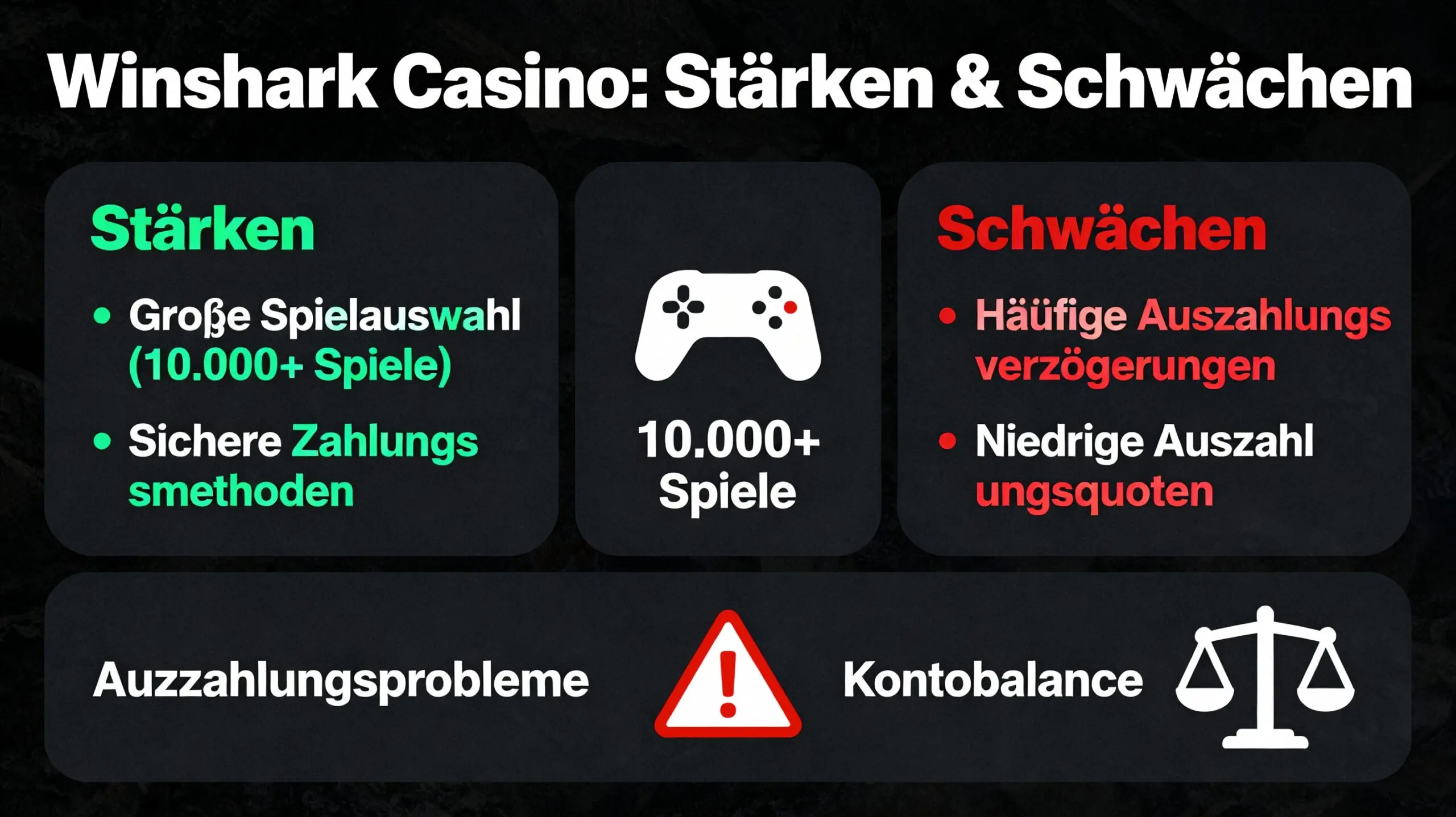 Winshark Casino präsentiert sich als modernes, innovatives Online-Casino mit großer Spielauswahl und attraktiven Boni. Doch die Realität ist komplexer. In meinem Test habe ich sowohl beeindruckende Stärken als auch erhebliche Schwächen entdeckt. Dieser Bericht zeigt die volle Wahrheit – nicht nur das Marketing-Versprechen.