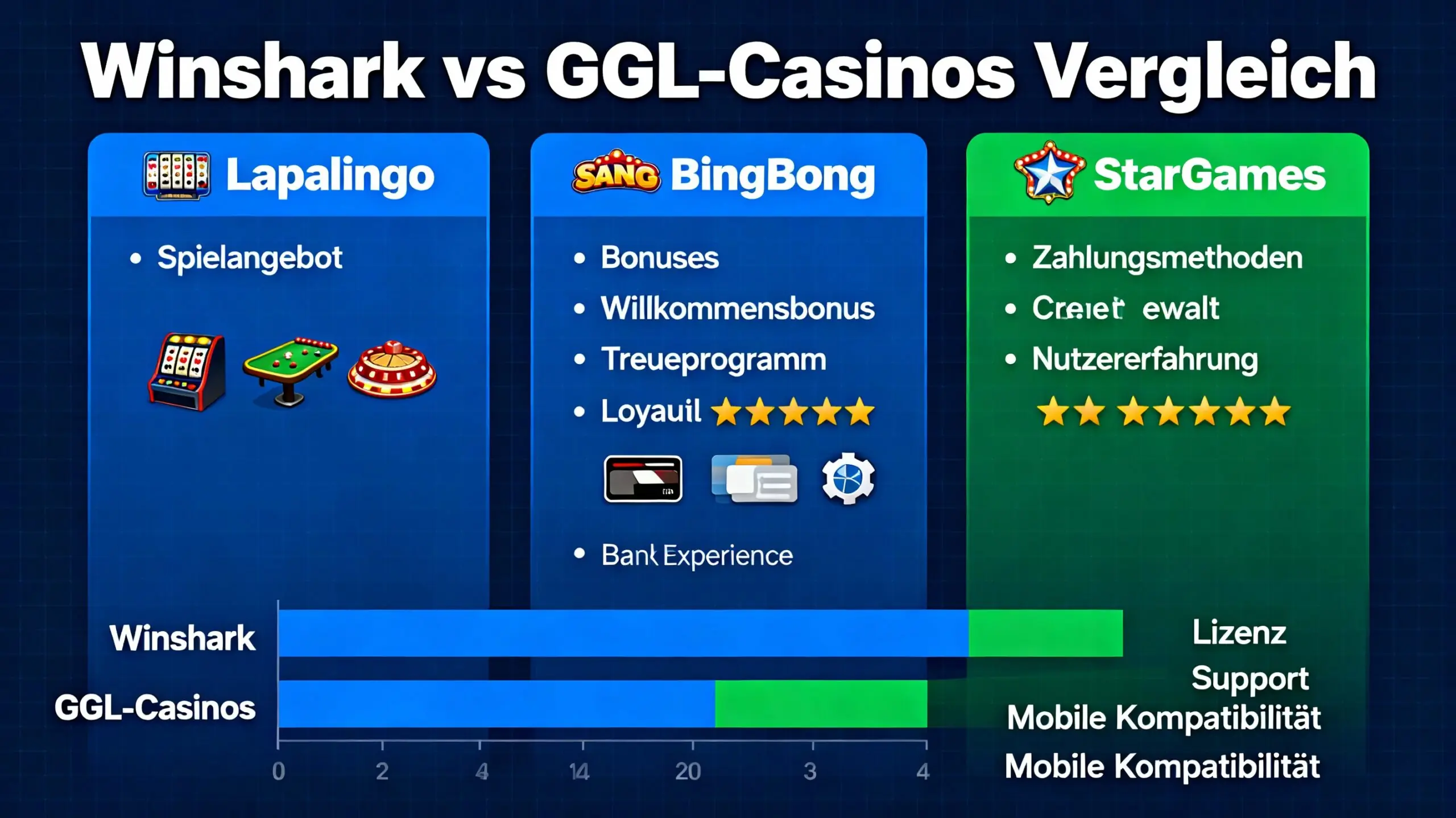 | Kriterium | Winshark | BingBong (GGL) | StarGames (GGL) | Lapalingo (GGL) |